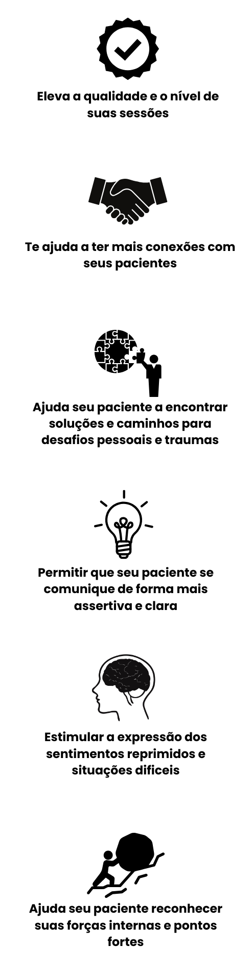 “Eu costumava ter dificuldades para engajar alguns pacientes que não gostavam de se expor. Essas perguntas me deram um repertório incrível para conduzir o diálogo de forma leve e eficiente. Hoje, minhas sessões são mais dinâmicas e meus pacientes se sentem mais acolhidos.“